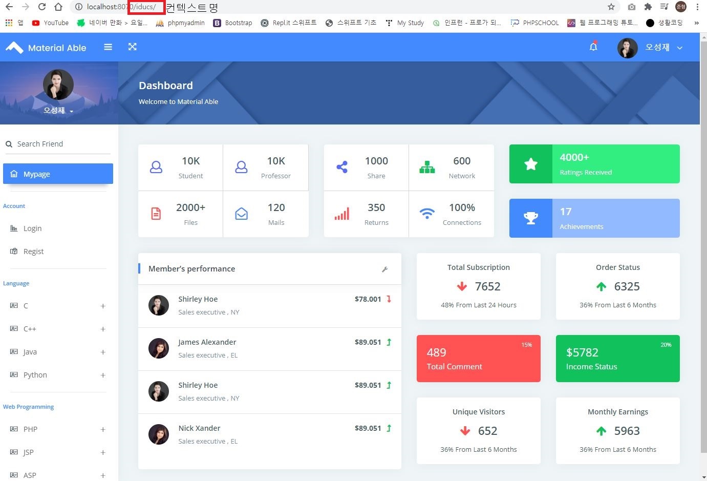 iducs라는 컨텍스트 명이 root 디렉토리이다.