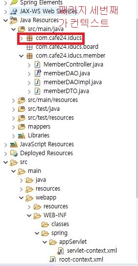 이클립스에서 스프링 mvc 프로젝트를 생성하면 톰캣서버에서 패키지 .을 기준으로 세번째를 자동으로 컨텍스트를 생성해준다.