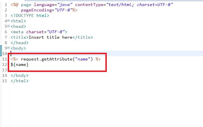 view 에서 데이터를 받아올 때는 위에 request.getAttribute() 메소드를 사용하거나 ${name} 로 받아 오면 된다.