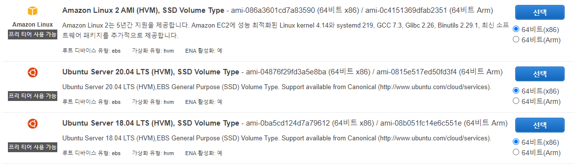6. 프리티어로 사용할 것 이기에 프리티어 사용 가능한 인스턴스 유형을 선택합니다.