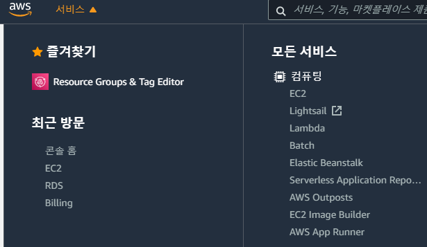3. 서비스 -> 컴퓨팅 -> EC2 클릭