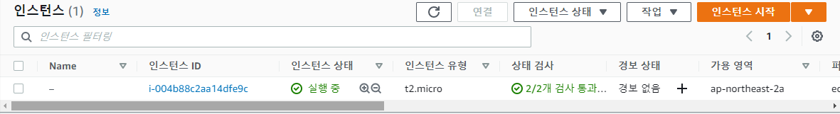 9. EC2 인스턴스에 가시면 인스턴스 상태가 생성 중 일 것입니다. 기다리시면 생성이 완료되고 실행 중으로 바뀝니다.