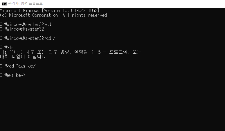 4. cmd를 관리자 모드로 실행합니다. 그 후 key가 있는 디렉토리로 이동합니다.