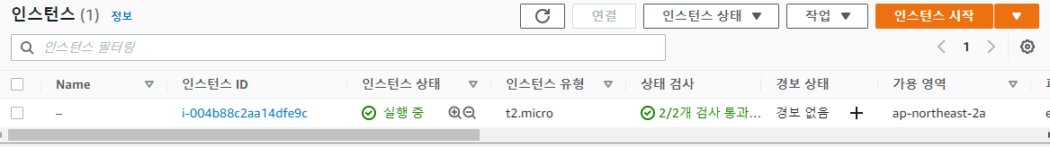 1. 해당 인스턴스를 클릭하고 연결을 눌러줍니다.