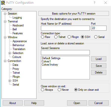 2. PuTTY를 실행해 줍니다.