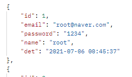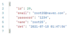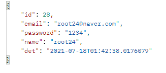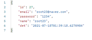 데이터 베이스에는 2021-07-18 01:39:18 로 값이 저장되었지만 우리가 보낸 det는 날짜와 시간 사이 공백에 'T'가 있고, 초도 . 단위로 상세하게 나오는 것을 볼 수 있습니다.