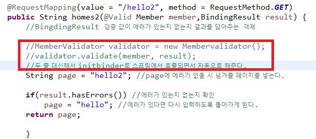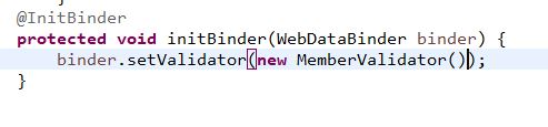 그러고나서 @InitBinder 어노테이션을 추가하고 하나의 메소드를 만들어 주면 이 메소드를 통해 MemeberValidator() 클레스를 가져올 수 있다.