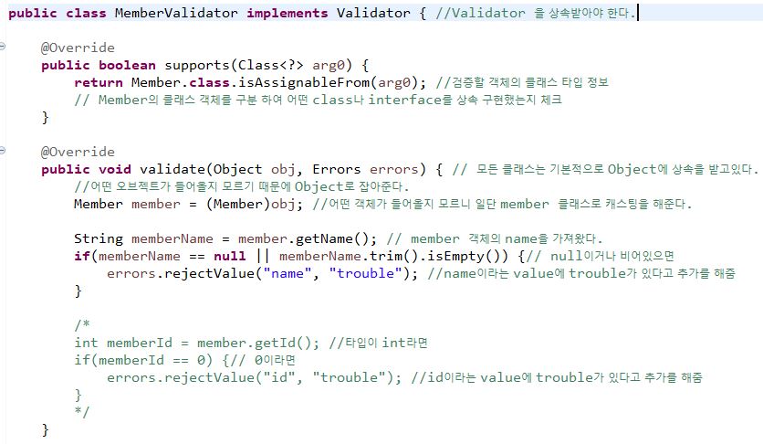 MemberVlidator 이라는 클래스를 만들기 위해서 Validator 을 상속한다.