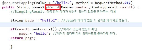 Member 객체 앞에 @Vaild 어노테이션을 추가해 준다.