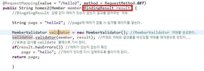 검증 결과를 받아오기 위한 BindingResult 객체를 받아온다.