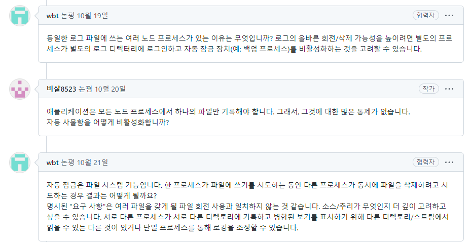 동일한 로그 파일에 여러 노드 프로세스가 읽고 쓰기를 시도하는 동안 파일 삭제가 이뤄지고 있기 때문입니다.