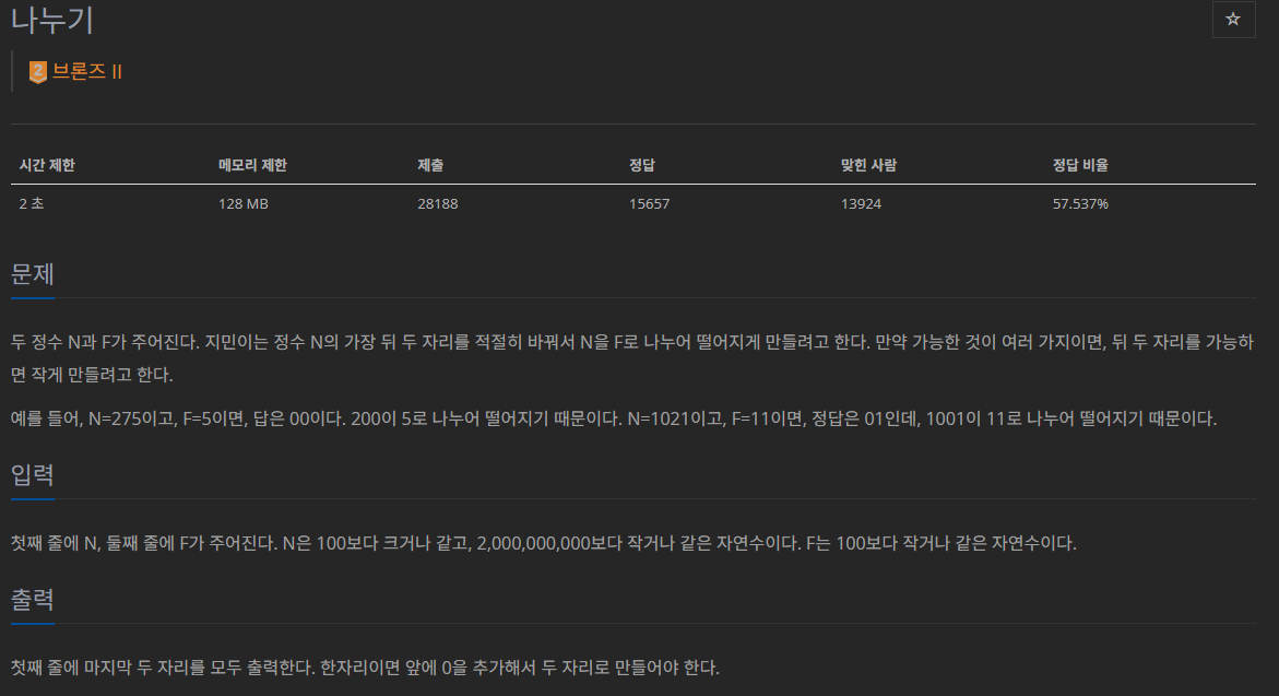 if N >= 100 and N <= 2000000000 and F <= 100: # 입력된 수를 체크합니다.