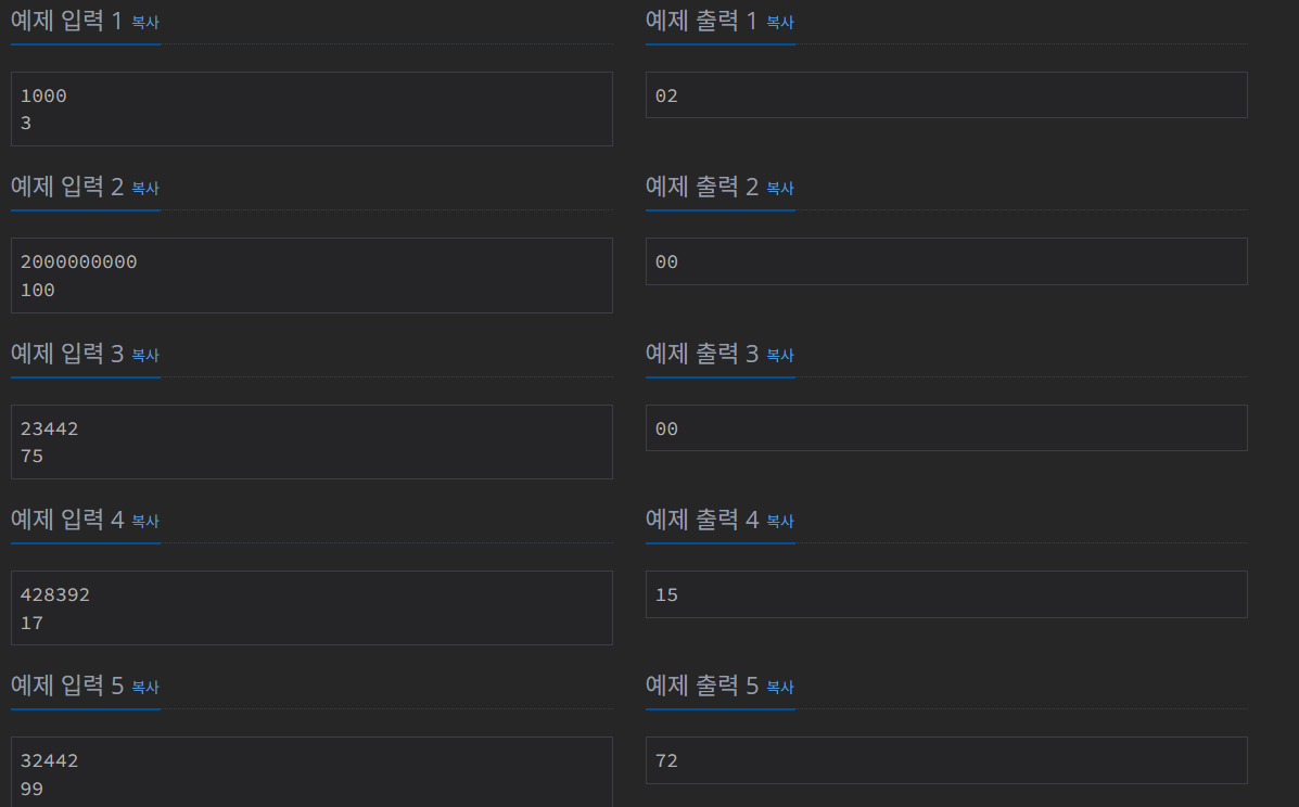 1. 입력되는 N의 맨 뒤 2자리를 00으로 바꾸는 로직을 추가합니다.
