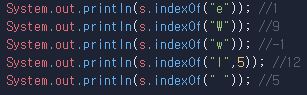 System.out.println(s.indexOf("w")); //-1
