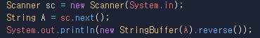 A를 StringBuffer에 저장하고 reverse()로 거꾸로 만들 수 있습니다.