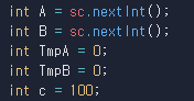A와 B를 입력받고 TmpA, TmpB, c를 초기화 시켜줍니다.